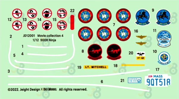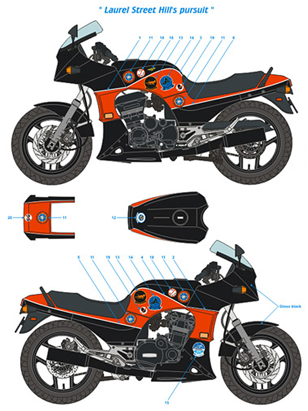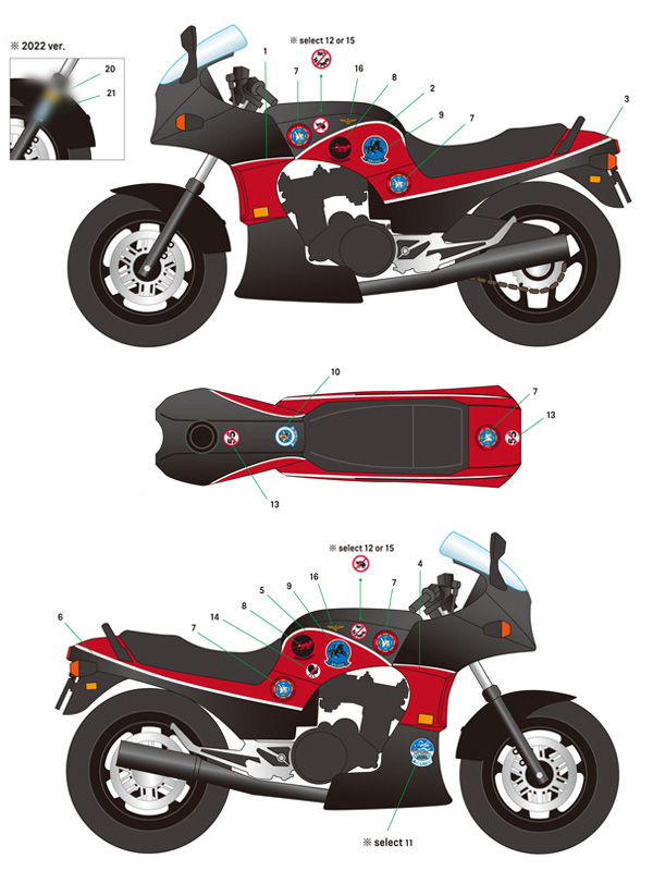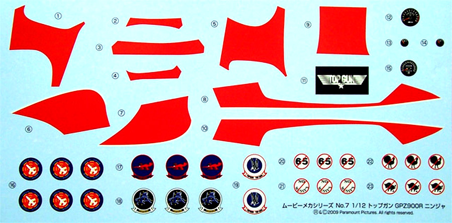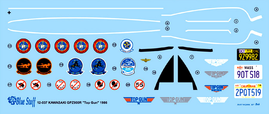 1986年トップガン仕様には、右アンダーカウルへの「CUBIC」ステッカーの貼付有り無しで、劇中車は少なくとも2台存在する