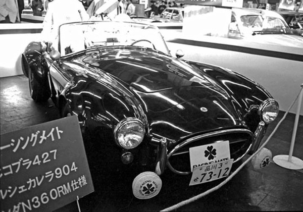 当時の東京オートサロン(おそらく)に展示された式場コブラ。レーシングメイトのエンブレムを掲げています。